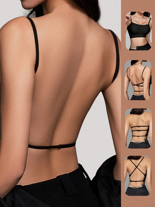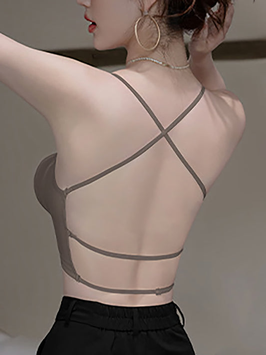 Sexy Backless Double Layers Yarn Cross Spaghetti Strap Bra