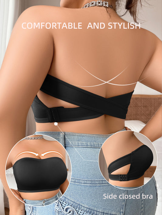 Women's Casual Seamless Simple Side Button Bandeau Bra Black