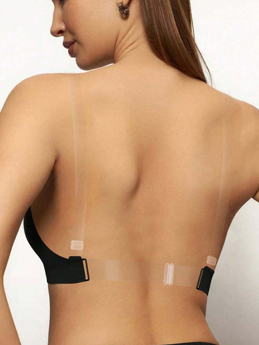 Invisible Transparent Tape Backless Strapless Wireless Bandeau Bra Black