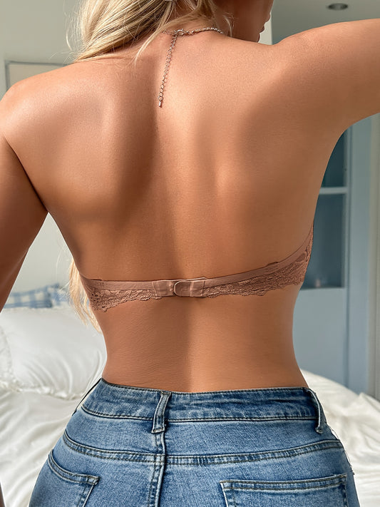 Lace Halter Strap Front-Clasp Wireless Bra for Plus Sizes – Sexy Backless Design