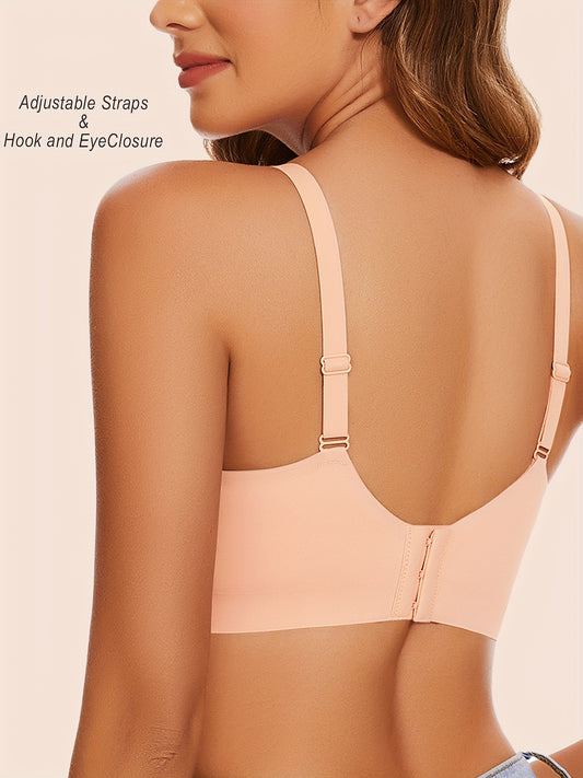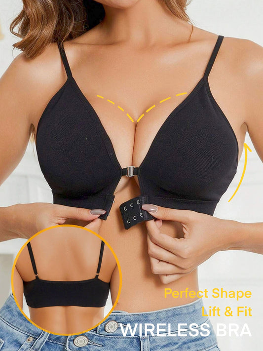 Solid Double Front Button Deep V Push-up Type Seamless & Wireless Comfortable Bra