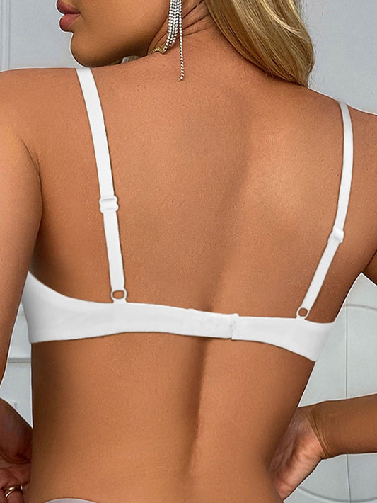 Front Closure Solid Color Adjustable Strap Underwire Bra White