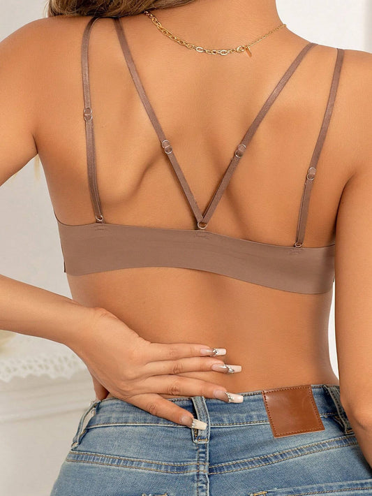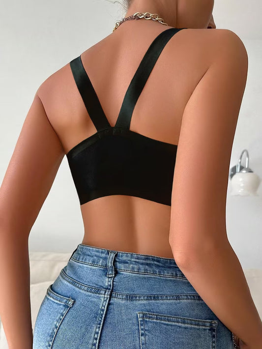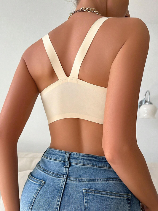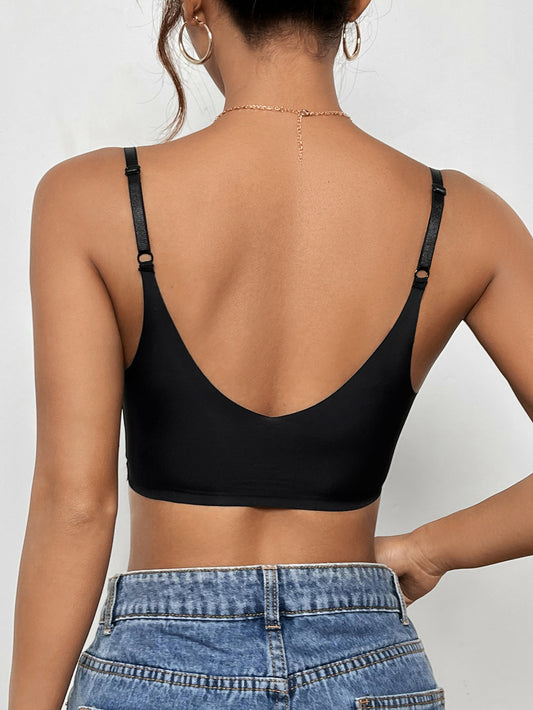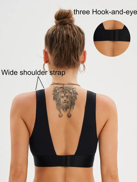 High Stretch Deep V Neck Solid Color Wireless Bra