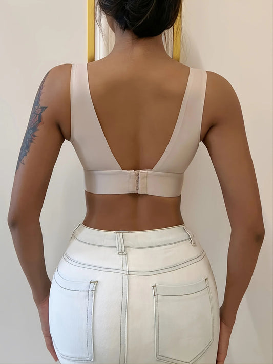 Deep V-Neck Front-Button Solid ColorBra, mit herausnehmbaren Pads Wireless Bra