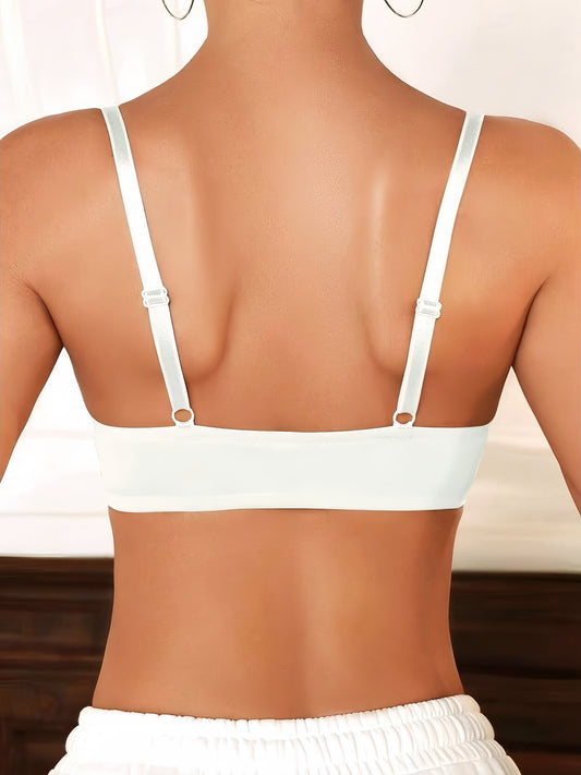 Simple Solid Push Up Bra, Comfy & Breathable Everyday Bra Ivory
