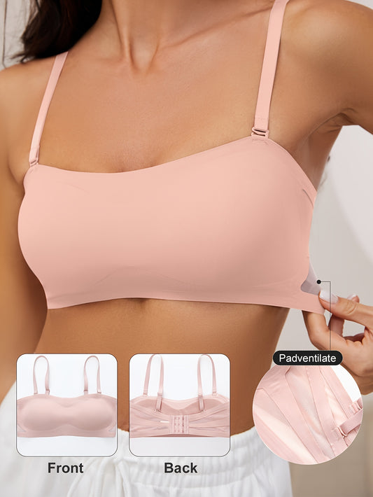 One-piece Front Closure Seamless Wireless Comfortable & Adjustable Bra,Invisible Shoulder Straps