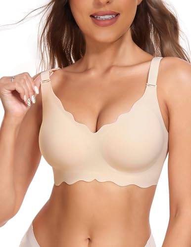 Wirefree Seamless Bra for Women Invisible Deep V Plunge Bra with Removeable Padding Tan