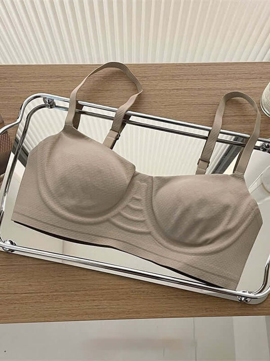 Seamless Thin Cup Gathering Anti-Sagging Wireless Soft Support Bra LightGray
