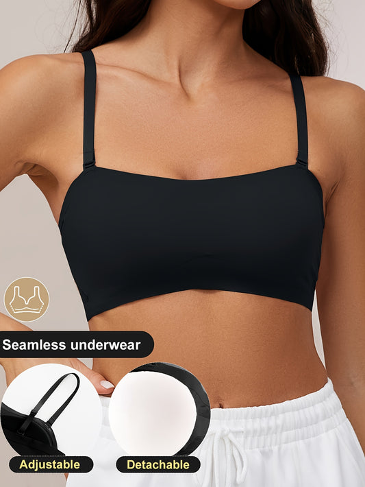 Seamless Wireless Bandeau with Removable Clear Straps and Wavy Trim — Breathable & Invisible Underwear