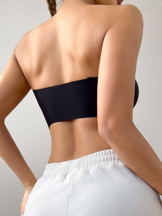 Solid Color Seamless Cutout Sexy Strapless Push-Up Bra Black