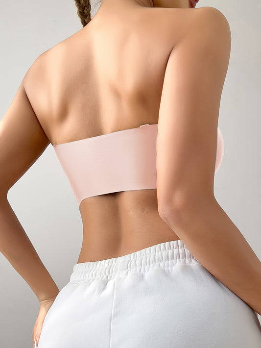 Solid Color Seamless Cutout Sexy Strapless Push-Up Bra Pink