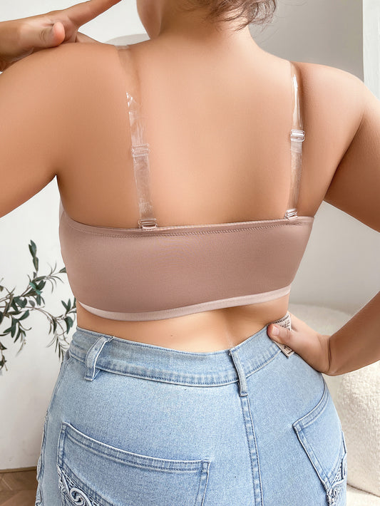 Lace Trim Push-Up Plus Size Bra with Adjustable Thin Y-Straps