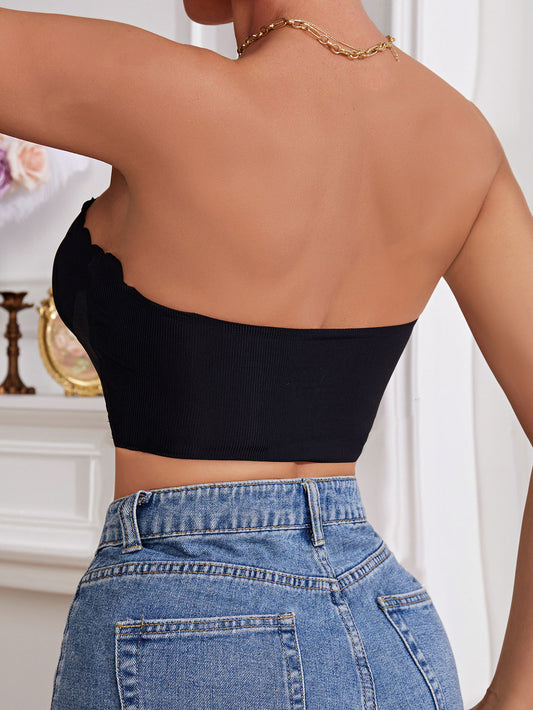 Lace Front Closure Strapless Gathered Non-slip Comfortable Breathable Beautiful Back Bra Black