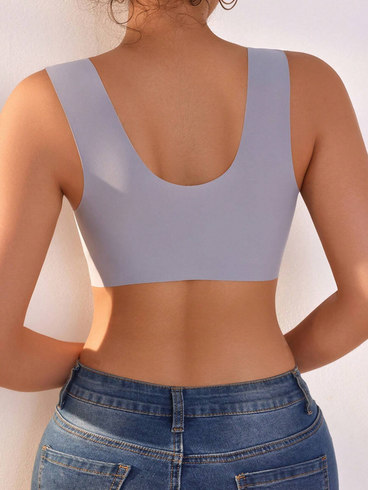 Contrast Mesh No Show Wireless Camisole Bra Lightblue