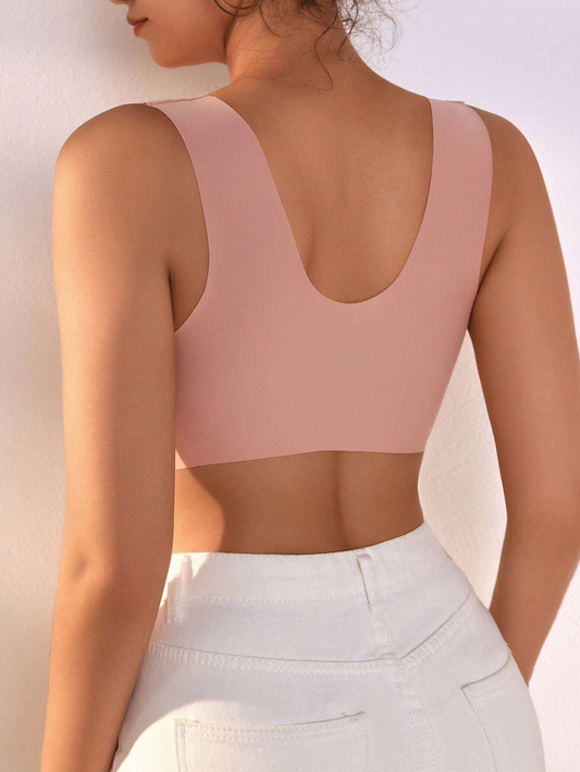 Contrast Mesh No Show Wireless Camisole Bra Pink