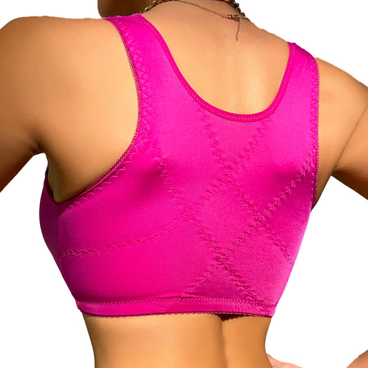 Plus Size Front Closure Lace Butterfly Wireless Bra Fuchsia