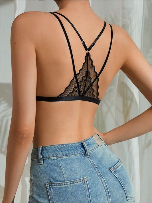 Sexy Triangle Cup Lace Wireless Bralette Black