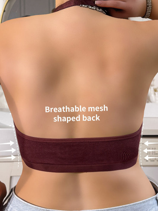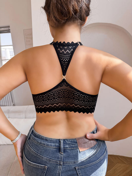 Lace Halter Strap Front-Clasp Wireless Bra for Plus Sizes – Sexy Backless Design