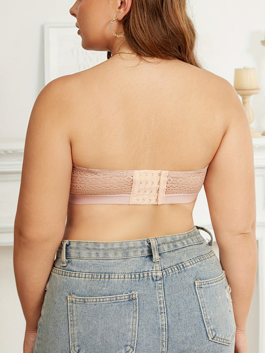 Plus Size Strapless Lace Bandeau Bra with Back-Sculpting Design RosyBrown