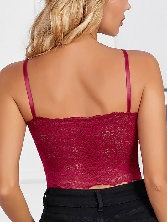 Lace Back Adjustable Straps Anti-Shine Camisole Bra Red