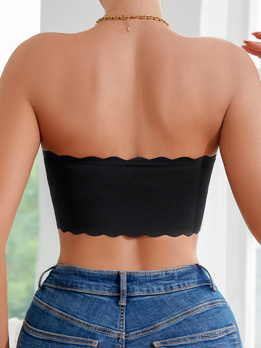 Embroidered Lace Invisible Gathered Anti-Slip Beauty Back Strapless Top Black