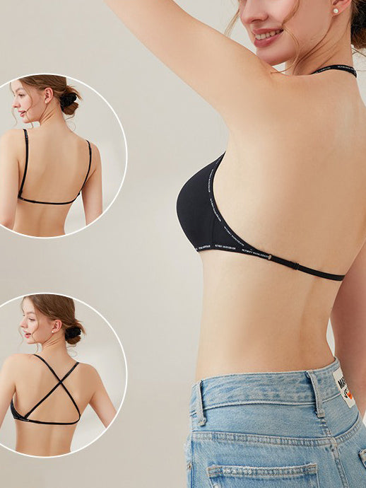 Halter Neck Backless Triangle Cup Strapless Front-Clasp Spaghetti Strap Bra