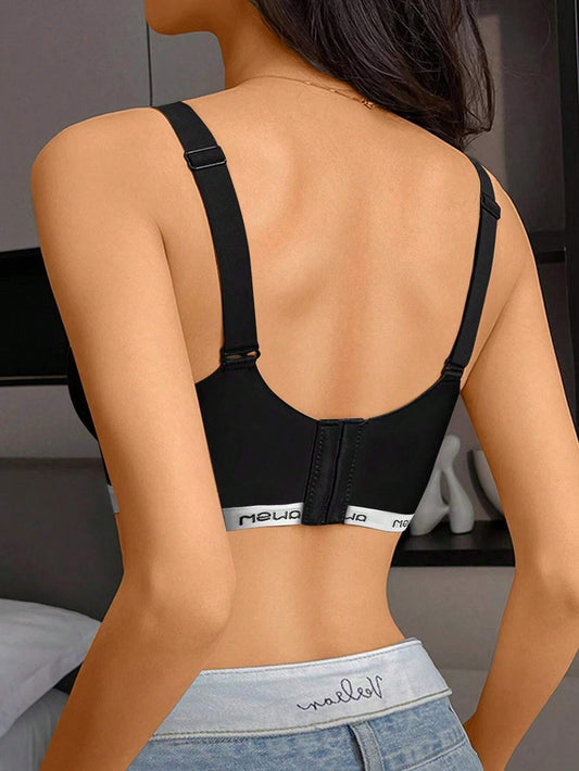 Front-Clasp Seamless Push-Up Cross-Strap Lettered Sexy Bra
