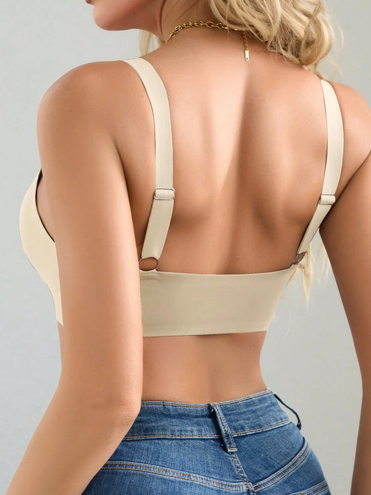 Seamless Minimalist Wavy Edge Solid Color Push-Up Bra Linen
