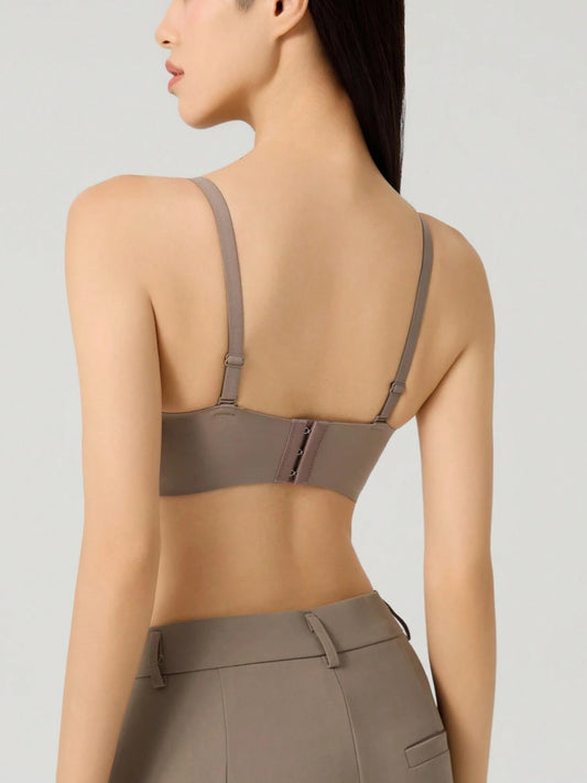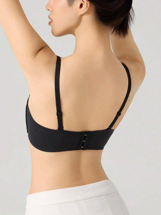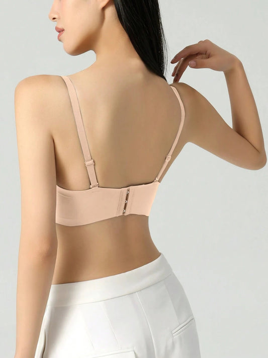 Seamless Solid Color Front-Opening Push-Up Bra with Padding and Sexy Deep V