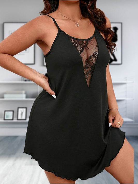 Sexy Lace Strap V-neck Full Slip Backless Sleep Dress