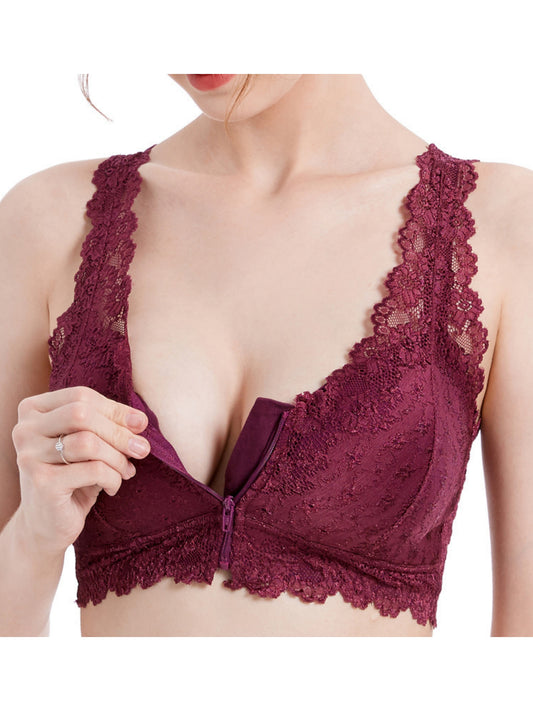Women's Lace Front Closure Padded Everyday Short Bra,Plus Size VioletRed