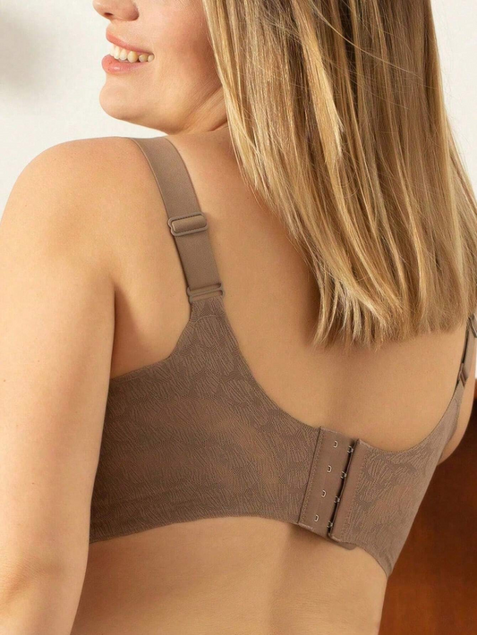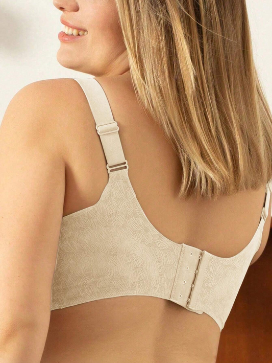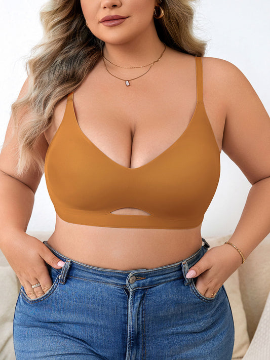 Plus Size Simple Seamless Hollow Out Wireless Bra Tan