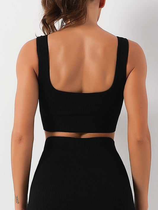 Seamless Casual Comfort Tank Style Seamless V-Neck Yoga Sports Breathable Back Bra Black