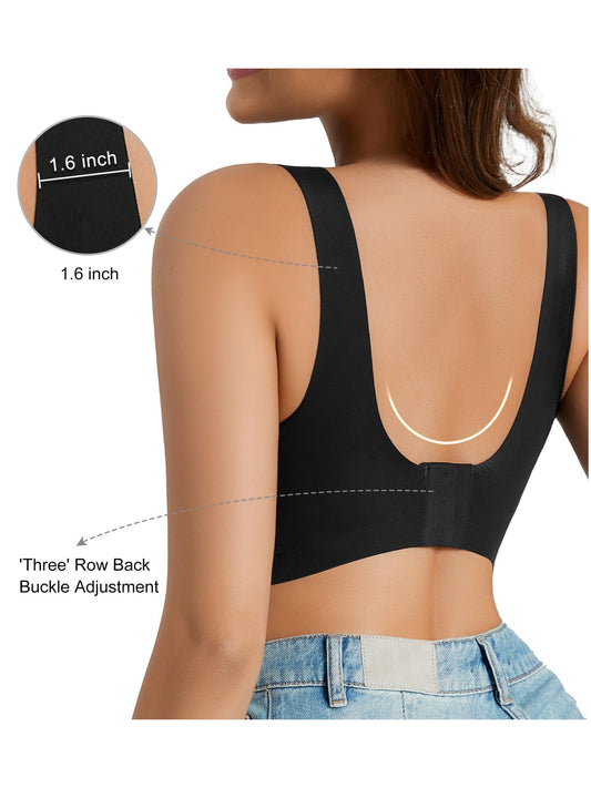 Women Casual Comfortable Seamless Front-Closure Wireless Bra Black