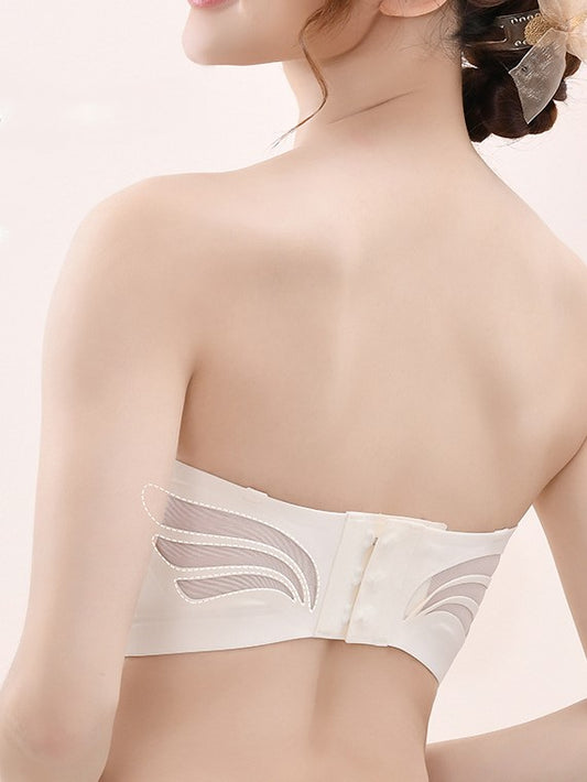 Casual-Minimalist Net Contrast Front Buckle Strapless Bra