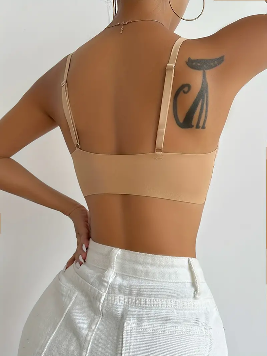 Solid Double Front Button Deep V Push-up Type Seamless & Wireless Comfortable Bra