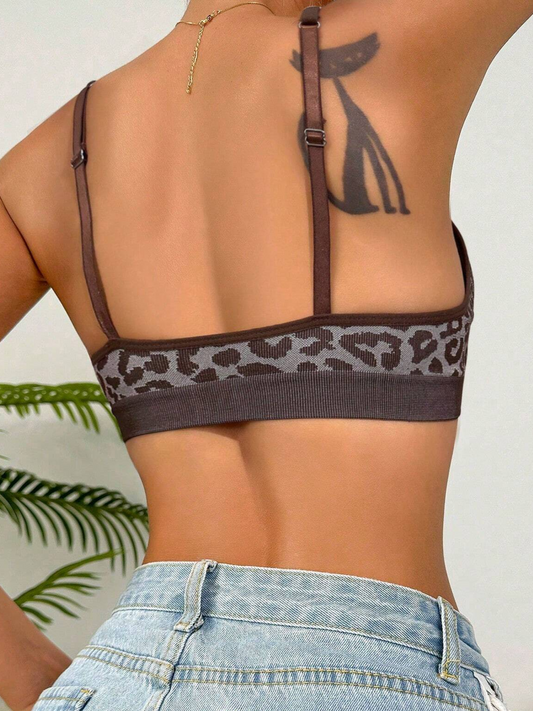 Seamless Push Up Wireless Sports Bralette Bras leopard print