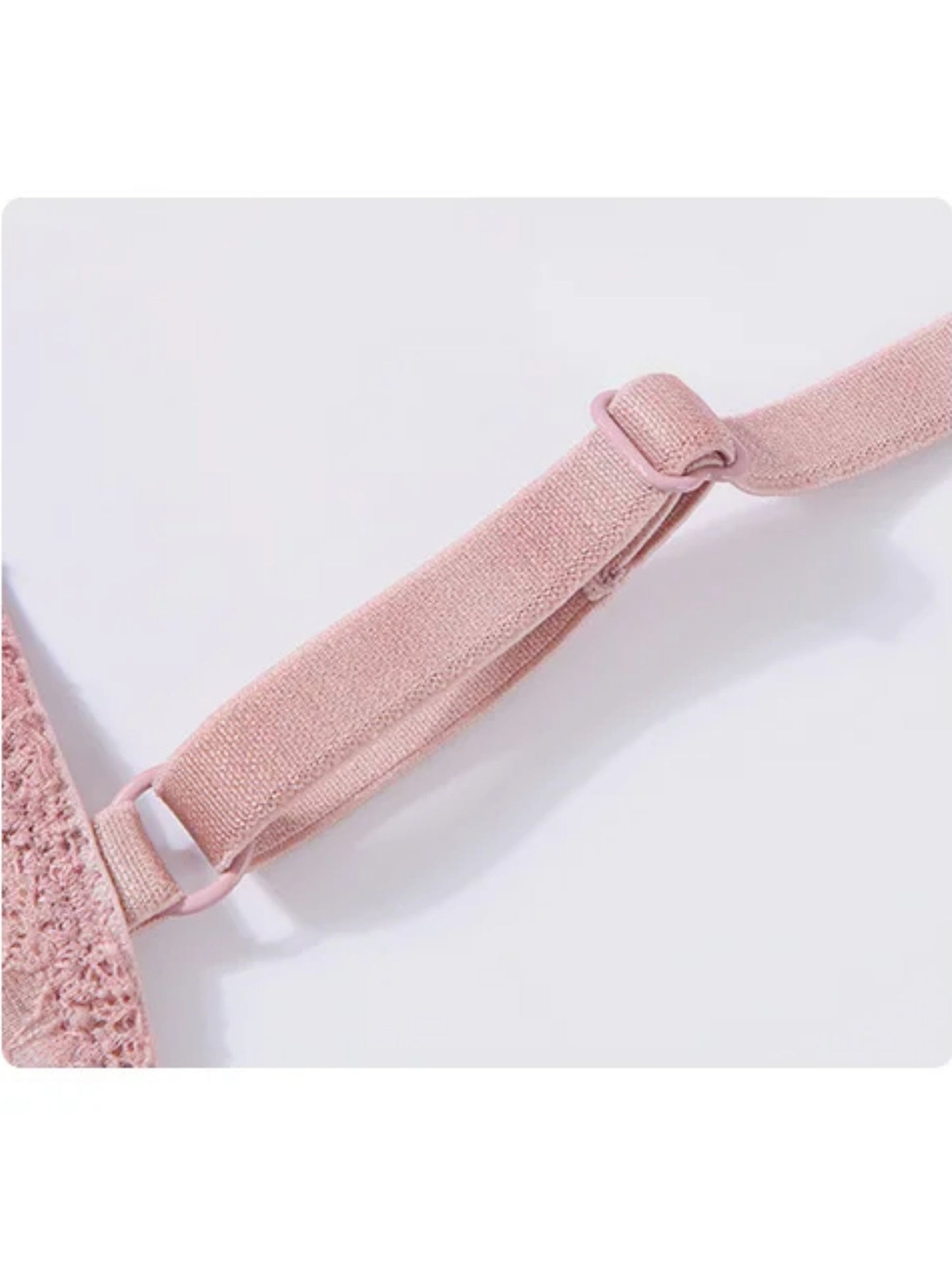 Semi-sheer Lace Scoop Bras, Comfort Wireless Everyday Bra Set Pink