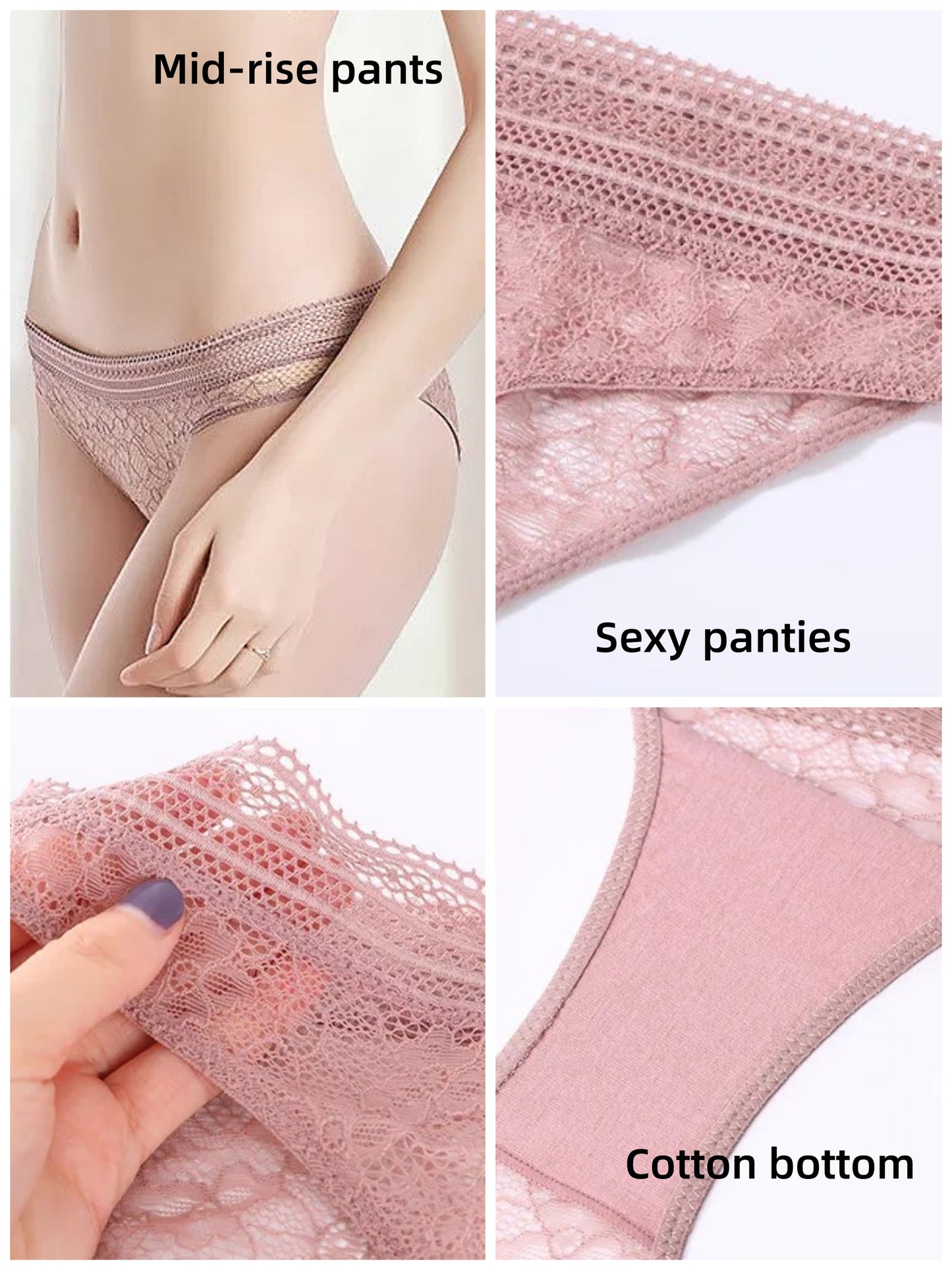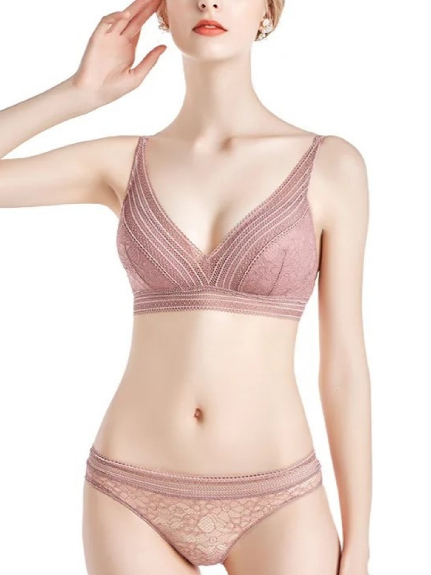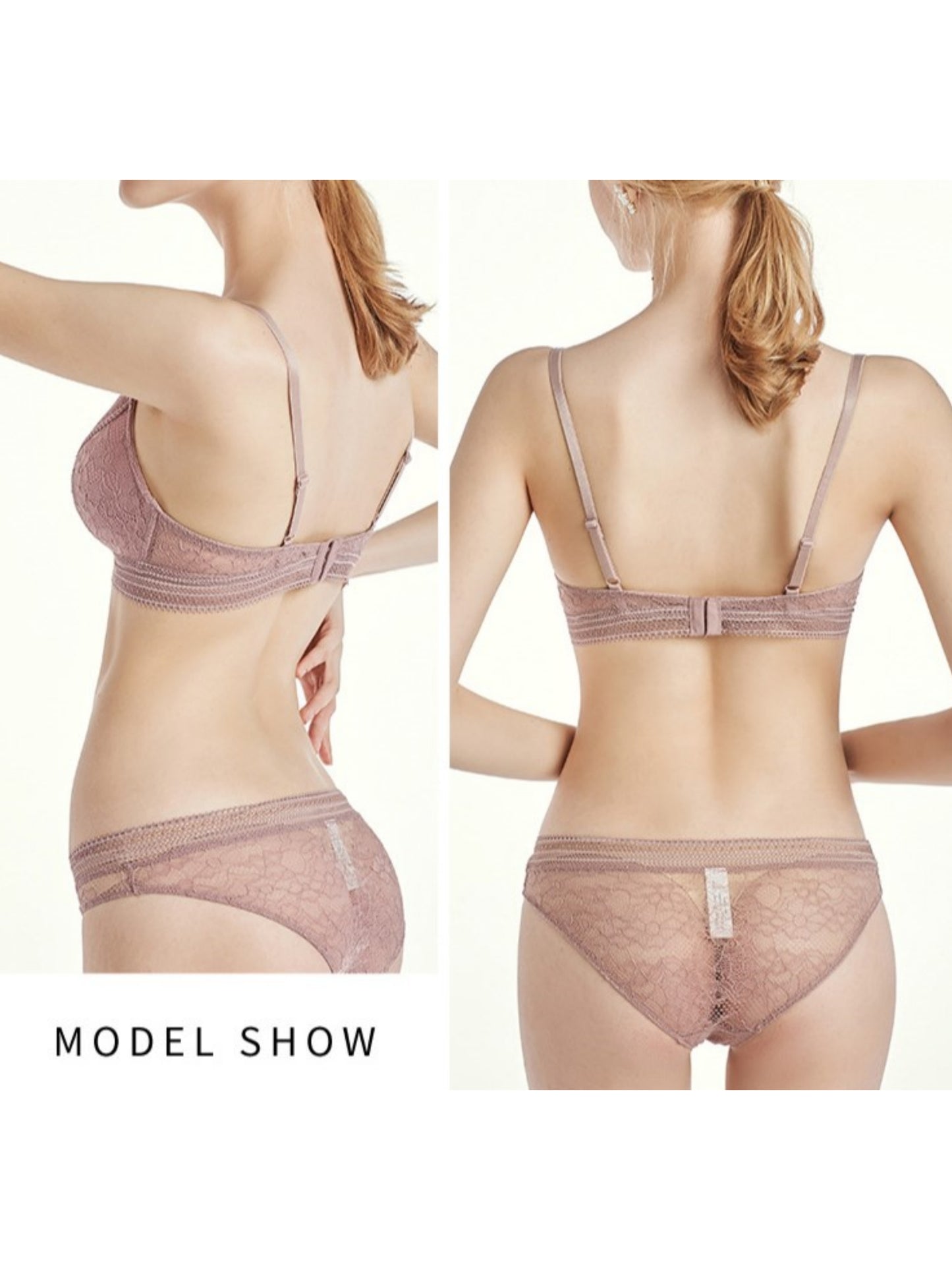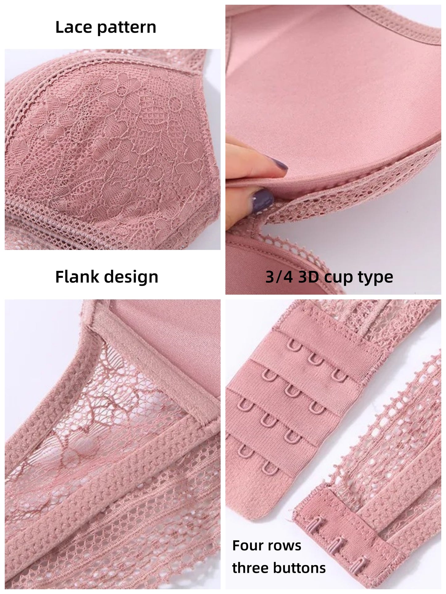 This lace wireless seamless underwear set is crafted from soft and thin fabrics, featuring delicate beauty and lace hollow design elements for a close-fitting, breathable, and unrestricted skin-friendly experience. Intelligent soft support lifts and protects the natural shape of the breasts, while four rows of three buckles and retractable shoulder straps offer lightweight chest support. Soft Q-elastic breast pads enhance the gathering effect, while hollow lace splicing panties feature a fashionable mid-rise style with neat stitching. The lace pattern fabric is soft and close-fitting, providing seamless comfort, while the cotton bottom offers breathability. If between sizes, choose the larger size.