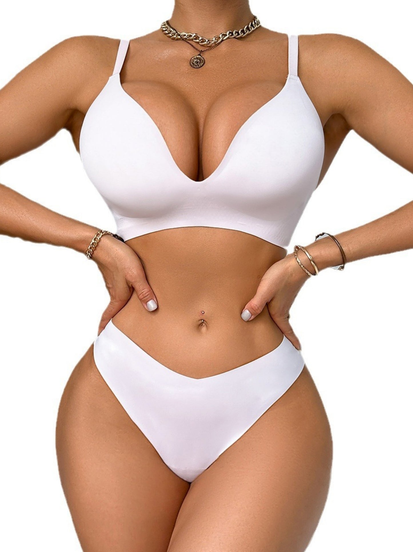 Introducing our Sexy Soft Support Push-up Seamless Bra Set, designed for ultimate comfort and a flattering fit. This solid color set features a V-neck design that enhances your natural curves. Made from breathable, soft materials, it ensures all-day comfort. The seamless construction provides a smooth look under any outfit, and the adjustable shoulder straps allow for a customizable fit. Perfect for everyday wear, this bra set combines style, comfort, and functionality in one elegant package.