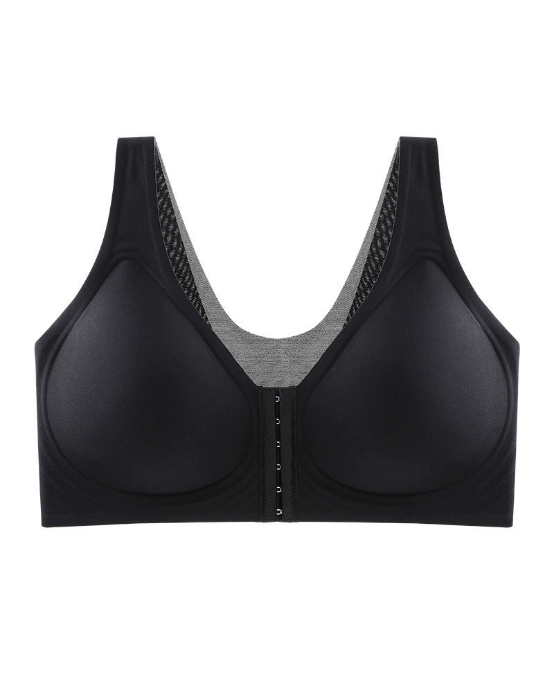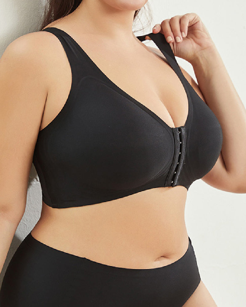 Smooth front clasp large size back support wireless bra Black