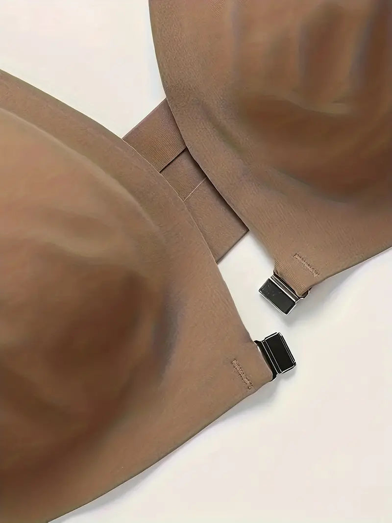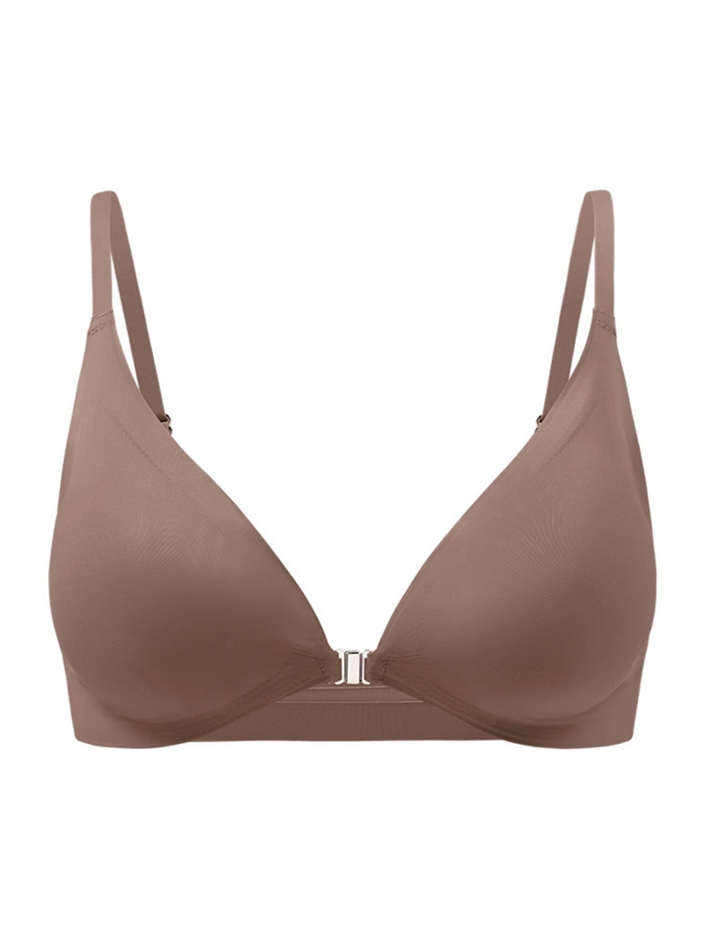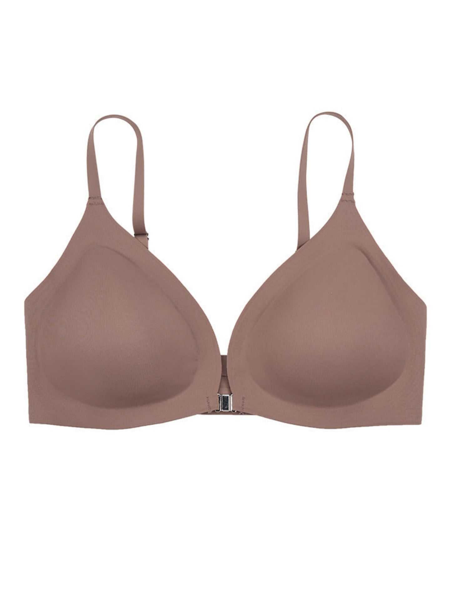 Comfortable Adjustable Straps Deep V Front Button Solid Color Wireless Bra Milkcoffee