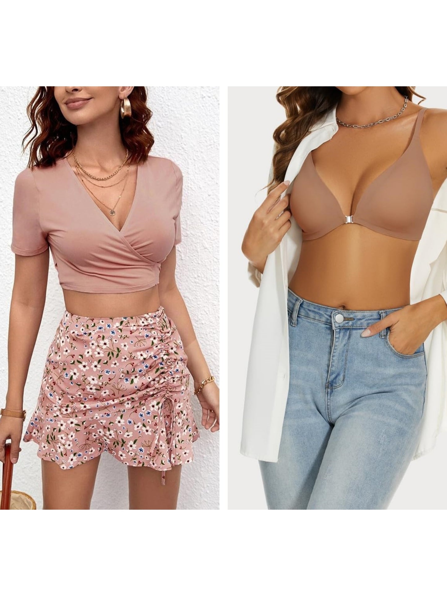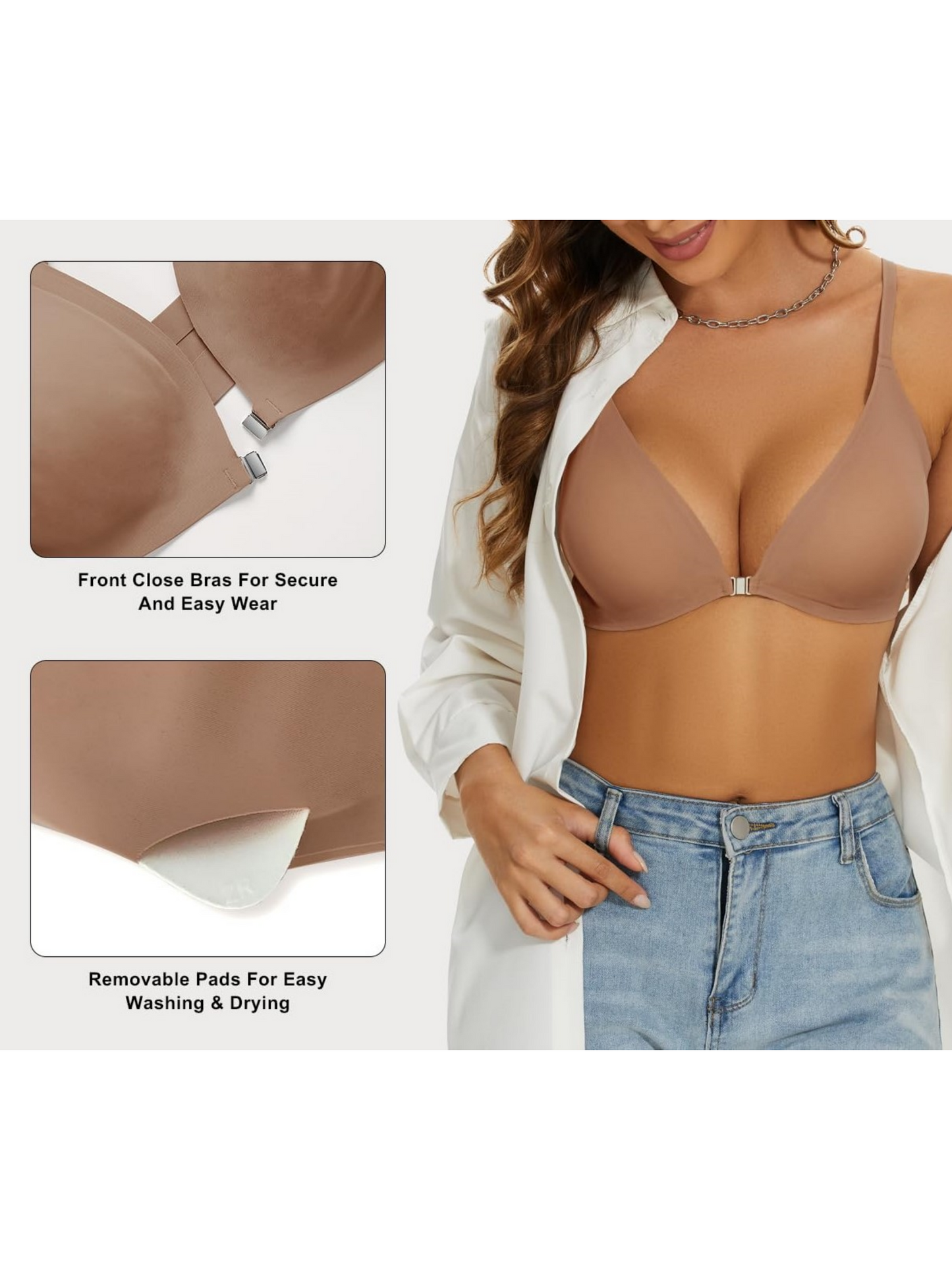 The deep neckline is designed to be worn with low-cut tops and dresses.The seamless design and wireless feature provide ultimate comfort and support for all-day wear.The front buckle closure makes it easy to put on and take off, while also adding a stylish touch.The push up feature enhances your natural curves and provides a flattering silhouette.